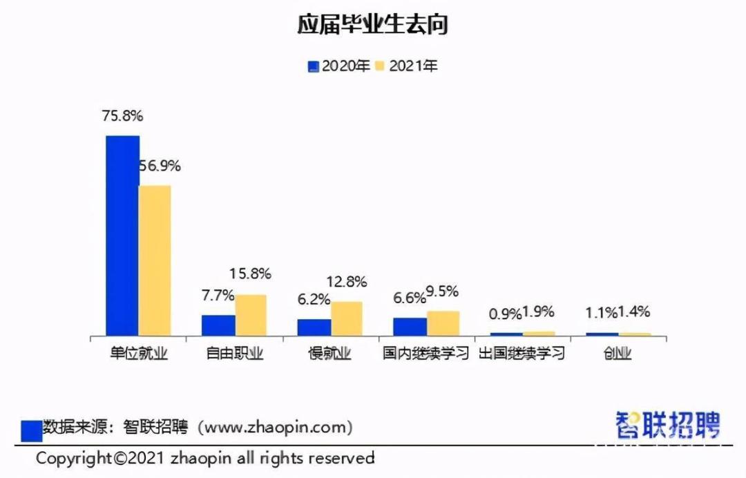 智联招聘《2021年中国大学生就业报告》数据显示,慢就业的本科生2021届比例为12.8%,他们中半数都在准备公务员、事业单位招录考试。
