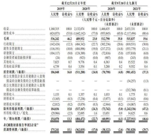 2019年,粉笔科技净利润为1.54亿元,经调整后的利润为1.75亿元,整体处于盈利状态;2020年情况急转直下,净利润降为-4.84亿元,经调整后利润为-3.63亿元;2021年前三季度,净利润为-12.28亿元,经调整后亏损7.82亿元,亏损金额是2020年同期的19倍多。