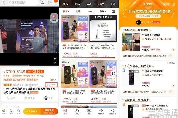而作为在国内市场推出的第一款“硬件+内容+服务+AI”智能健身产品,FITURE在去年双11已跻身天猫运动用品大类累计预售额榜单TOP4。不过目前在天猫平台,FITURE旗下的多款产品月销量通常在百台左右,而京东平台的店铺总评数也没有破万。可见,智能健身镜作为运动硬件产品的细分产品,似乎并没有受到太多用户的关注。