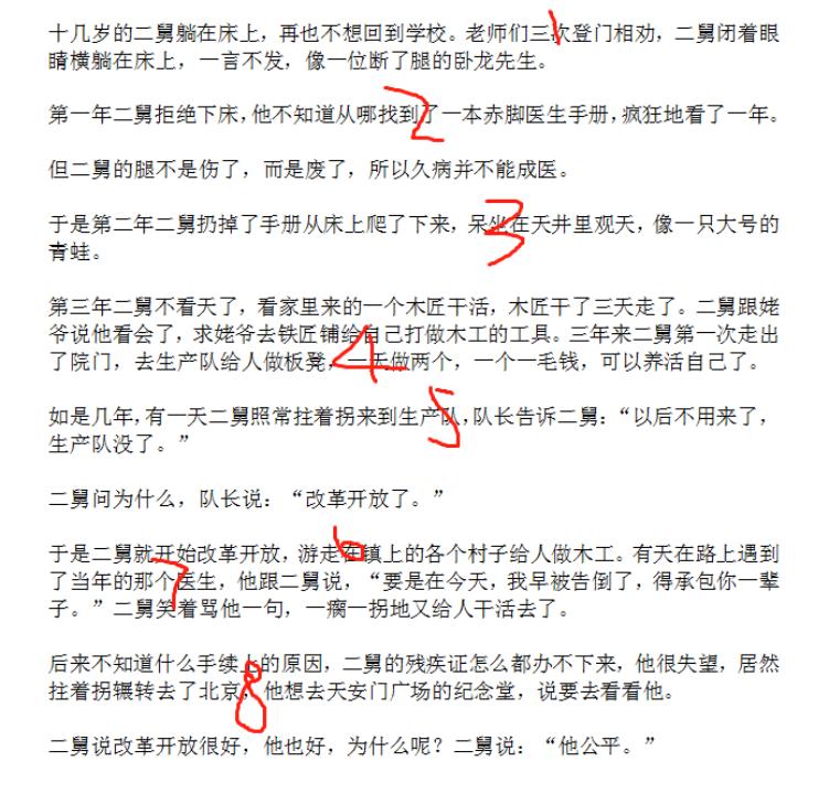 7、《二舅》采用了时间轴的顺序,从小学写到现在的66岁,大家就这么跟着看了一遍二舅的人生,很友好的叙述方式。我们知道有一些丧心病狂的作家,都喜欢用结构来搞死读者,就不点名《尤利西斯》什么的了。