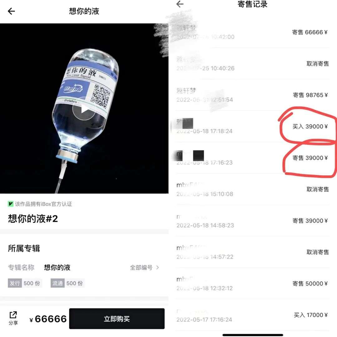 来源/panda提供iBox想你的液数字藏品出售记录(右)图/iBox想你的液数字藏品(左)