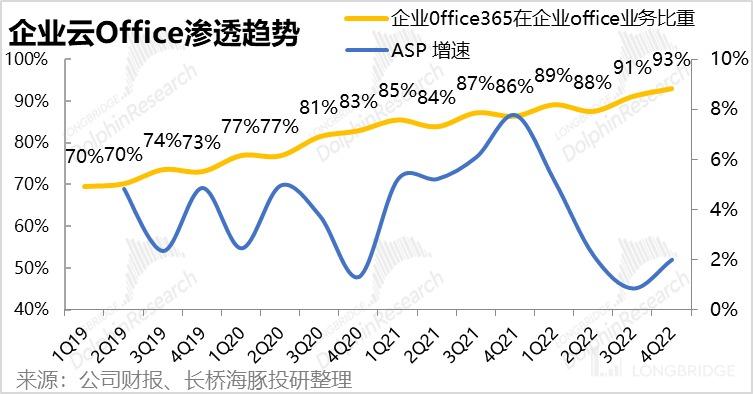 本季度,云端的 Office 365 在企业 Office 整体营收中的占比进一步提高 93%,占比进一步提升的空间已然很小。