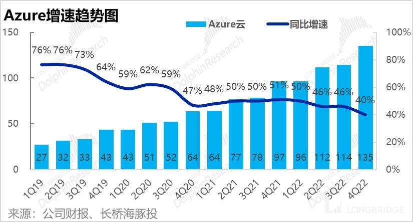 根据海豚君的观察,卖方对 Azure 的增速预期普遍是 low 40%,实际表现压着市场预期的下限、勉强及格。