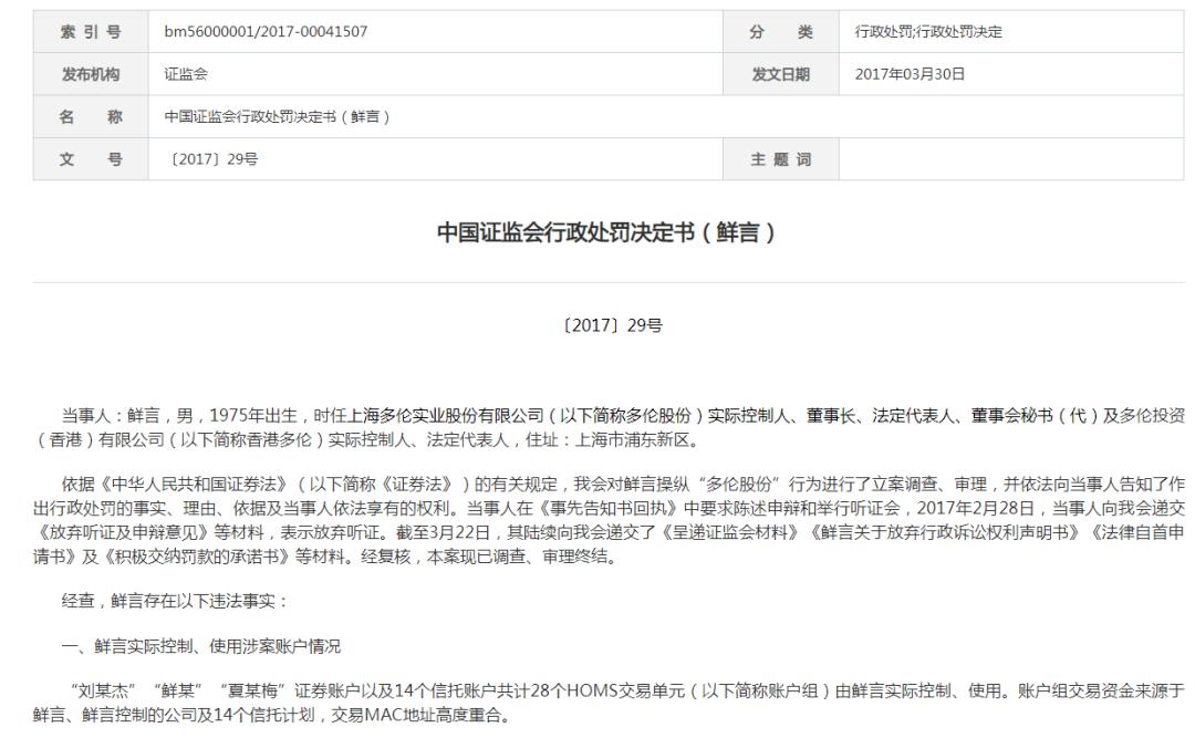 2018年7月,证监会公布第二批资本市场46名“老赖”名单,均为不缴纳证监会行政处罚罚没款当事人,鲜言位列其中。