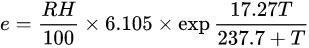 其中 AT 为体感温度(°C)、T 为气温(°C)、e 为水汽压(hPa)、V 为风速(m/sec)、 RH 为相对湿度(%)。