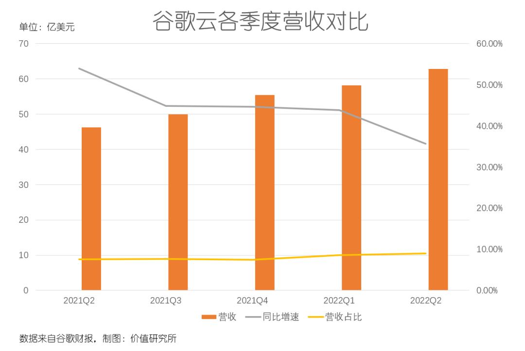 刚刚公布的Q2财报显示,谷歌云实现收入62.8亿美元,同比增长35.6%,远低于去年同期的53.9%。在谷歌的营收版图里,这个数据可以说是有些尴尬。