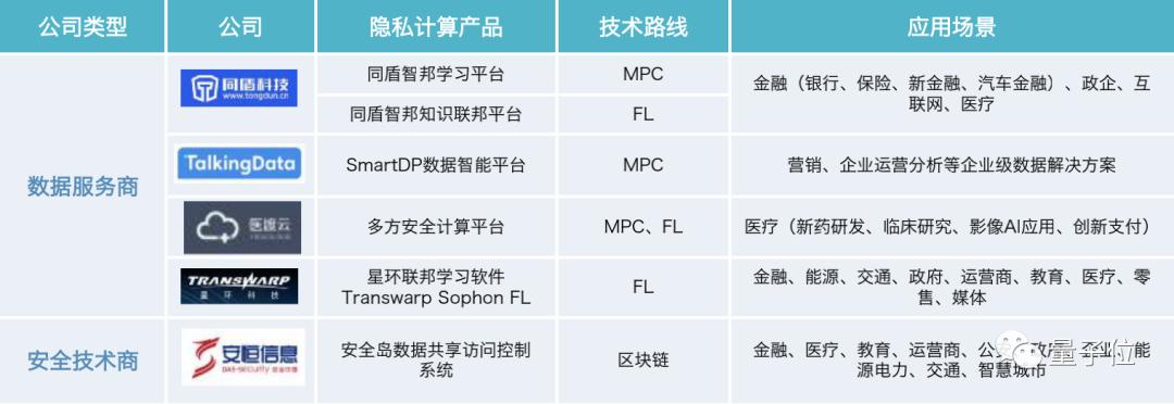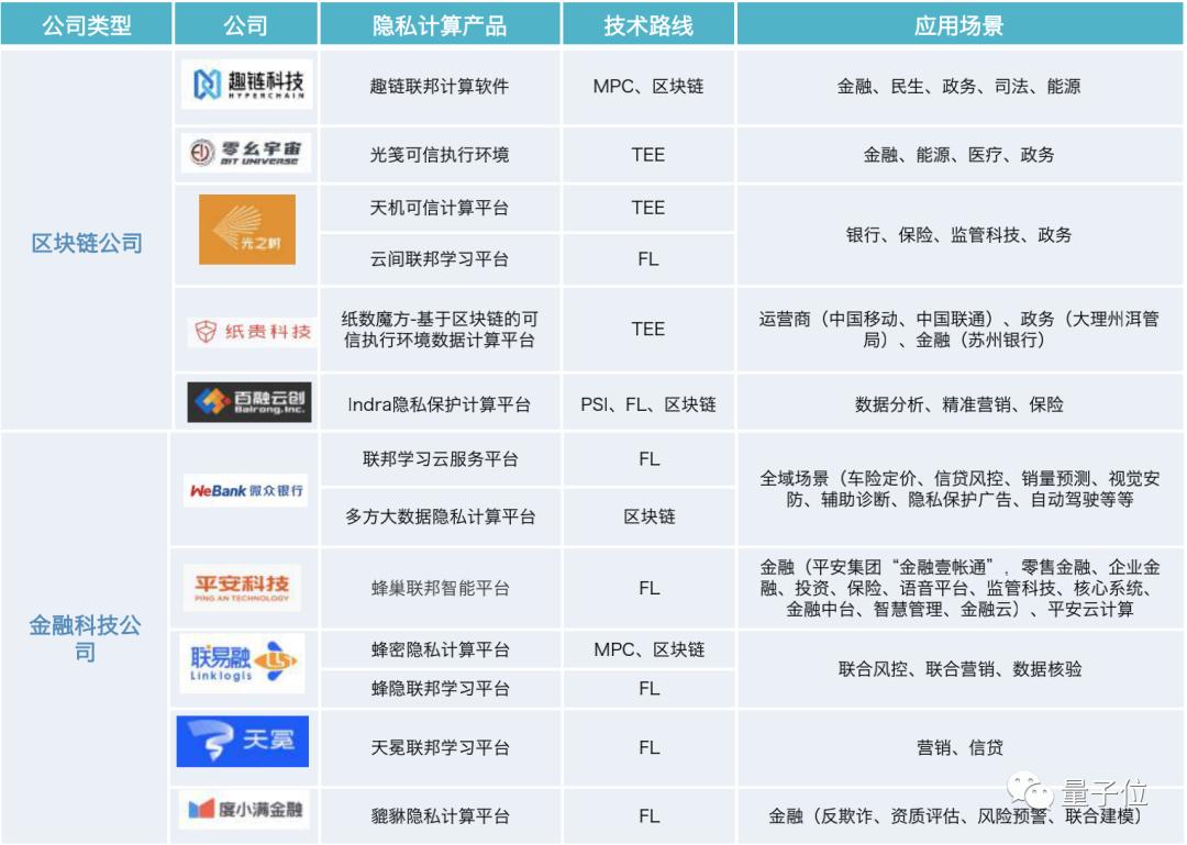 量子位智库把隐私计算产业参与方做了分类整理,可分为以下几类: