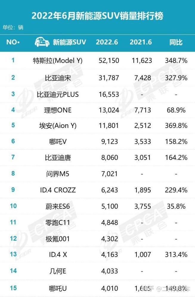 根据乘联会发布的2022年6月新能源SUV销量排行榜,排名第一的依然是特斯拉Model Y,销量为52150台,理想ONE的销量为13024台,蔚来ES6只有5100台。