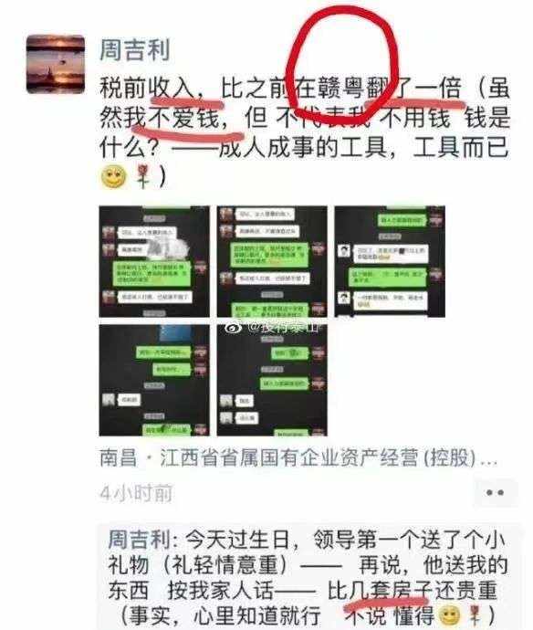 近日,江西国企员工周劼在朋友圈里“炫富”“炫权”一事引发舆论广泛关注,除了任职单位发布通报,江西省纪委监委驻省交通运输厅纪检监察组也称“正在核查调查”。