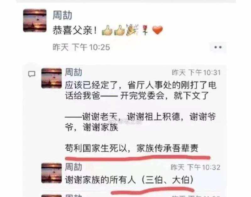 周劼与赣粤高速的关系不止于此。周劼在朋友圈里恭喜父亲升职时,称“谢谢家族的所有人(三伯、大伯)”,而根据江西国控27日的通报,周劼大伯是江西省高速集团原党委委员、工会主席,于2012年退休。目前,江西省高速集团已经更名为“江西省交通投资集团有限责任公司”。