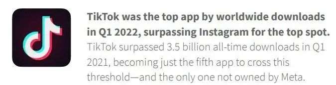 再从大数据来看,据 Sensor Tower,今年第一季度,TikTok 全球下载量排名第一;Small Business 数据显示,全球在 Instagram 上花费的平均时间为 28 分钟,TikTok 则为 52 分钟。