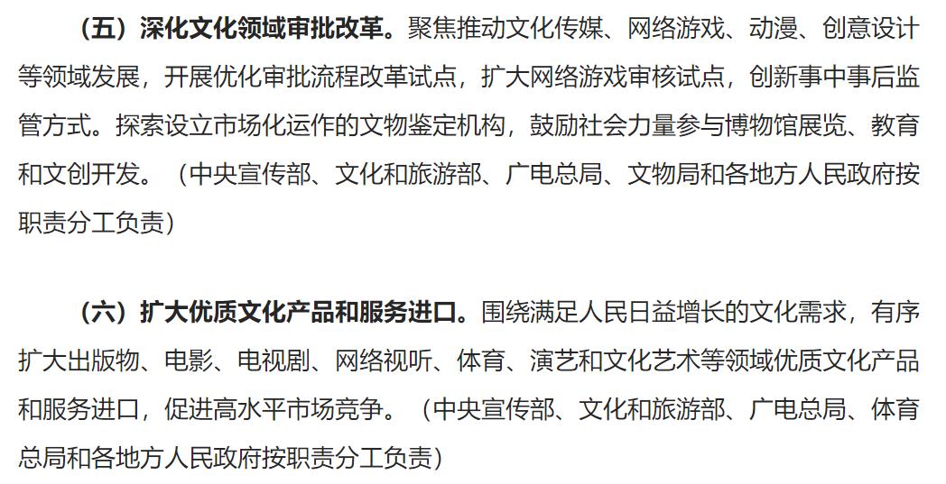 或为避免持续高压激化行业发展向恶,7月18日,包括国务院、中宣部在内的27部门发布《关于推进对外文化贸易高质量发展的意见》一文,提到要“开展优化审批流程改革试点,扩大网络游戏审核试点,创新事中事后监管方式”以及“扩大优质文化产品和服务出口”。