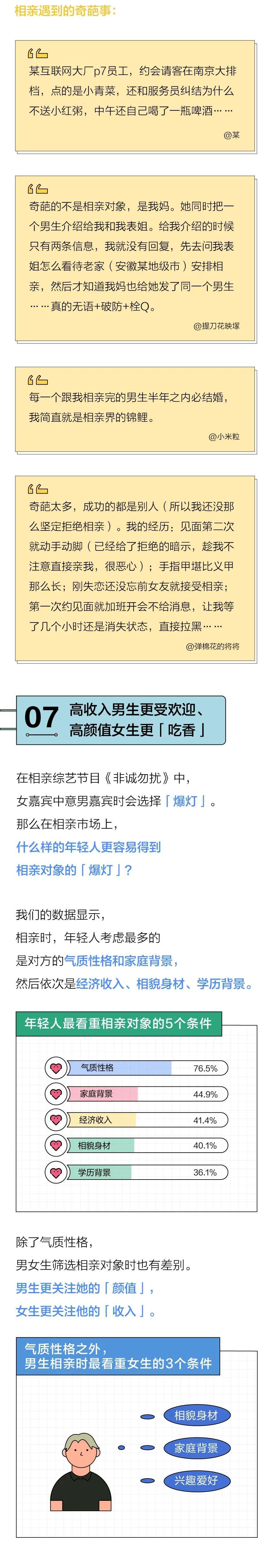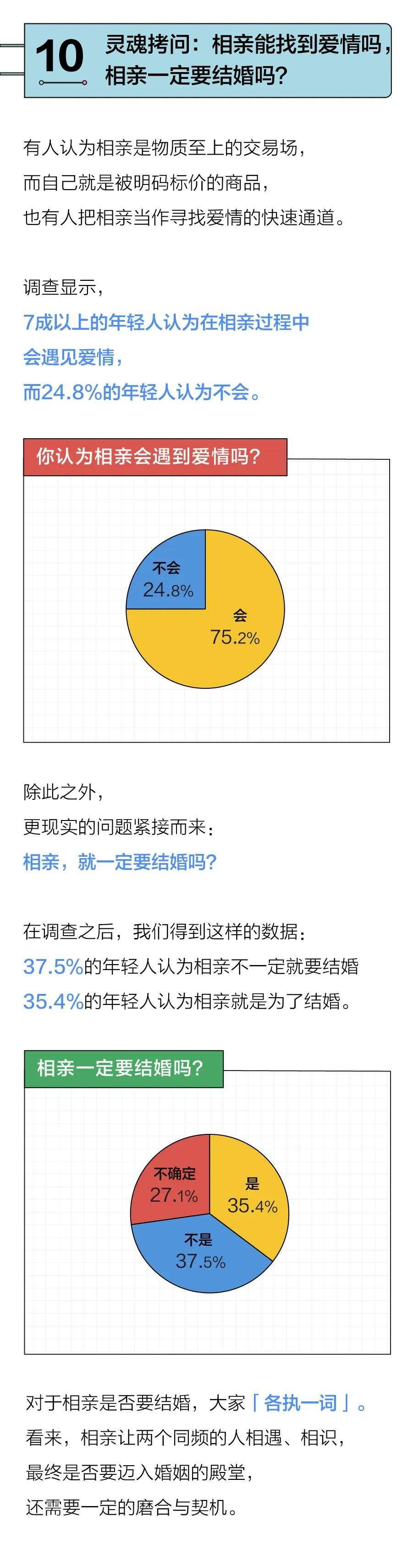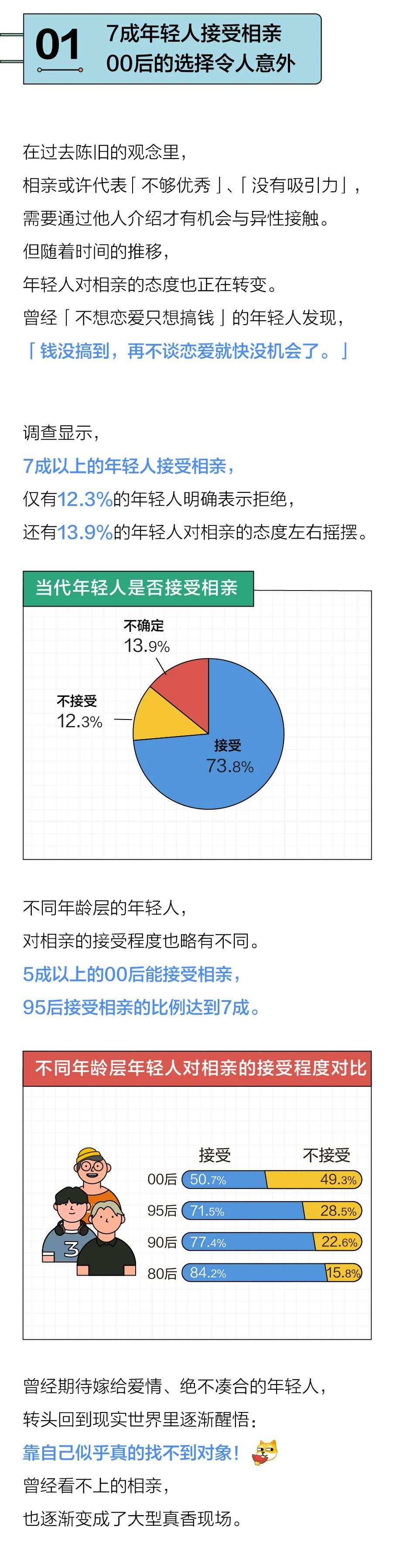 追求个性、自由、高效、不愿意将就的年轻人,将择偶的主动权以及标准放到自己手中,对于相亲的态度更加开放和包容。他们认为相亲是一种高效的交友手段,不浪费时间且双方目标统一的接触形式让他们更有安全感。