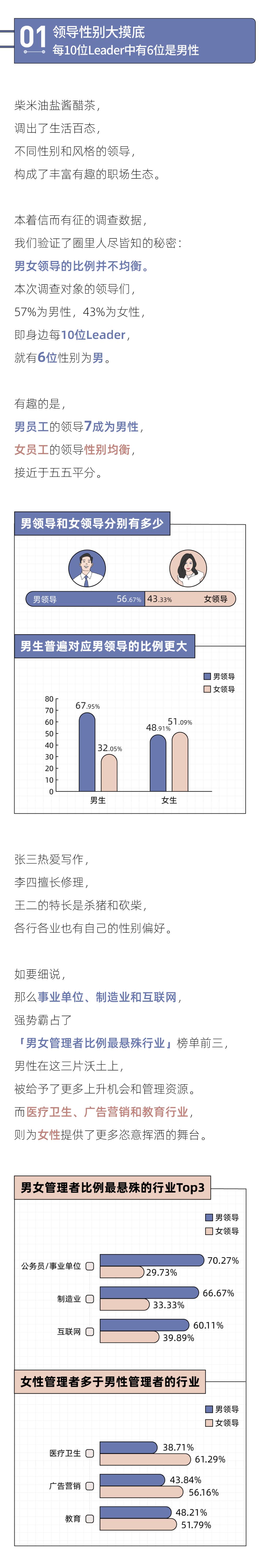 通过大家这次的匿名投票,我们印证了很多过去对领导的模糊印象,比如在大多数管理岗位上,领导的性别并不平均,男性依旧占据了更多的上升机会。而北京和上海走在全国前列,是男女领导最均衡的两座城市。