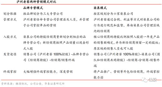 泸州老窖的“柒泉模式”是指按区域划分销售,由泸州老窖自己的销售团队和优质经销商共同出资建立销售公司,统一每个区域的销售计划、实施方案,由泸州老窖直接对接柒泉公司。