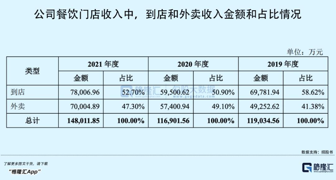 具体来看,老娘舅的主营业务收入主要来自直营门店的门店经营收入以及对加盟商的食材销售收入,其中,门店餐饮在收入结构中占比超过九成,而在其中,基于疫情的常态化,公司加强了外卖业务的发展,这块业务的收入在逐年上升。