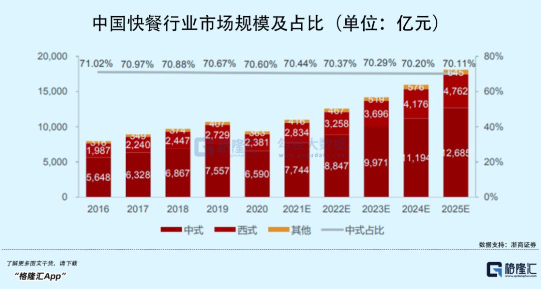 其中,中式快餐里面的学问可不少,便利又具备性价比,是不少打工人的心头好。虽然肯德基、麦当劳等“洋快餐”起步较早,占据了一定的消费心智,但近年来,中式快餐的发展也不容小觑,在众多品牌的本土化探索下不断扩容,规模化与连锁化进程加快,我国的中式快餐已然成为一个千亿市场,预计2025年这一行业市场规模将接近1.3万亿元。