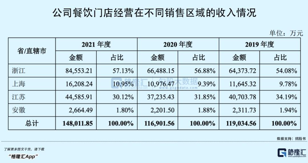 报告期内,老娘舅的经营门店主要位于以江浙沪为主的华东地区,其中,来自浙江的收入占比最高,尚未面向全国其他地区布局经营门店。