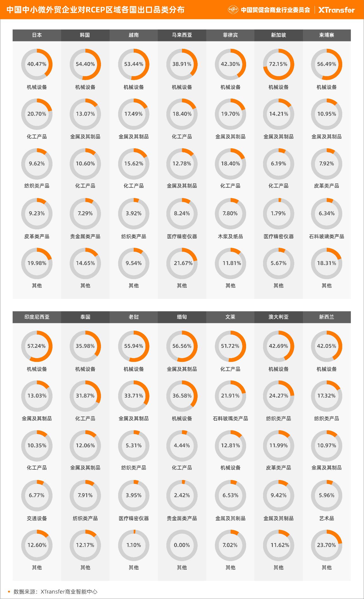 XTransfer - 中国中小微外贸企业对RCEP区域各国出口品类分布