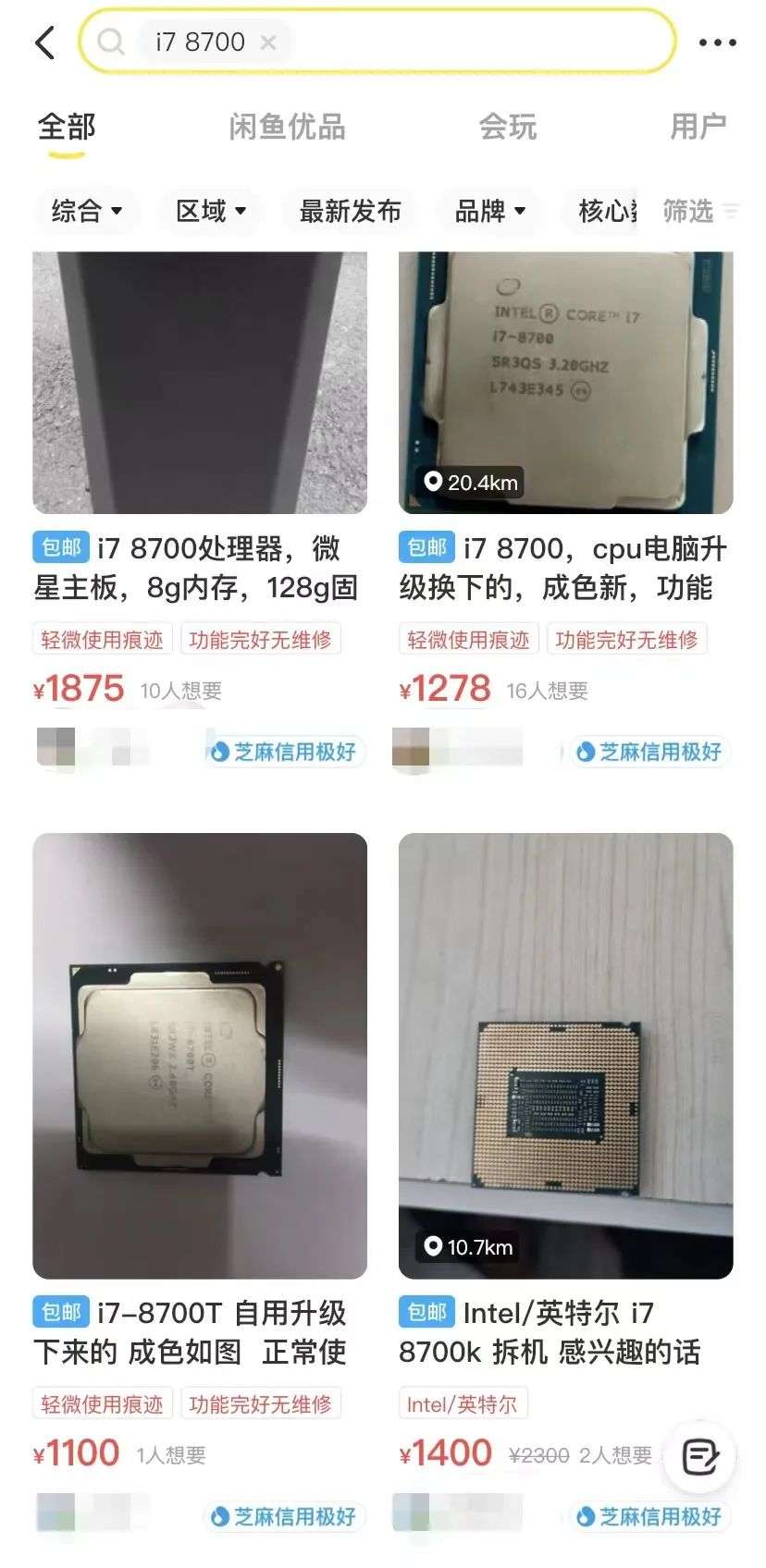 拿 i7-8700 来说,这颗 2017 年的 CPU ,现在闲鱼价格依旧在 1200 元以上,要知道,四年前它的上市价格也才 2999 元。