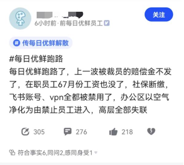 不过,每日优鲜欠薪、裁员是不争的事实。一位于5月被裁员工透露,原本定于6月底发放的赔偿金被推迟至7月底,但至今仍未发放。在职员工的境遇也好不到哪里去,仍有员工6、7月的工资未发放,社保、公积金也存在断缴情况,部分员工已被通知在家待岗。