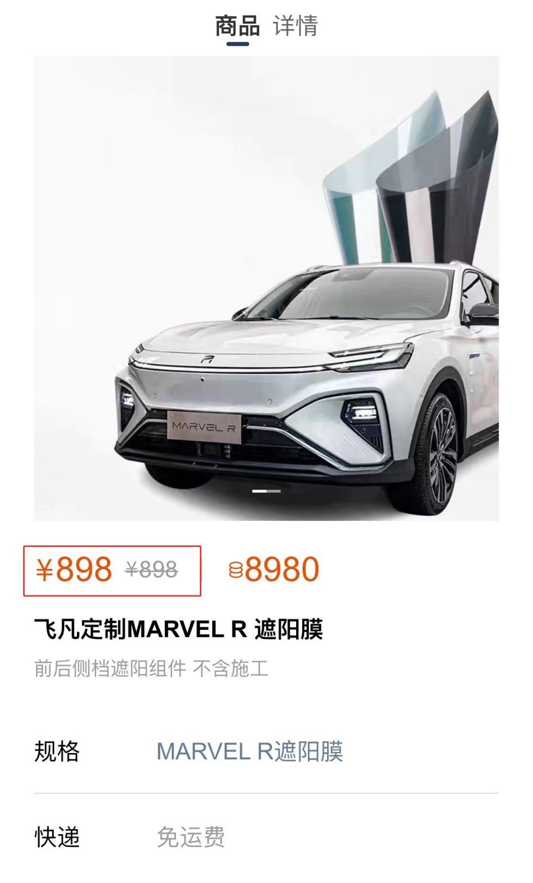 这些车企自营的遮阳帘或遮阳膜大多售价不菲,如上述飞凡汽车销售提到的“飞凡定制MARVEL R遮阳膜”在飞凡App中需要898元。