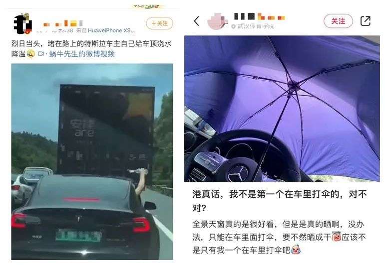 买前浪漫,买后“热浪满满”,有车主甚至在车内打起了伞。“7月23日,我和朋友们相约出游,虽然空调调到了18摄氏度,但阳光透过全景天窗照进来的时候还是很热很晒,因为距离目的地还有一段距离,我们干脆在车里打起了伞。”福建的一位特斯拉车主表示。