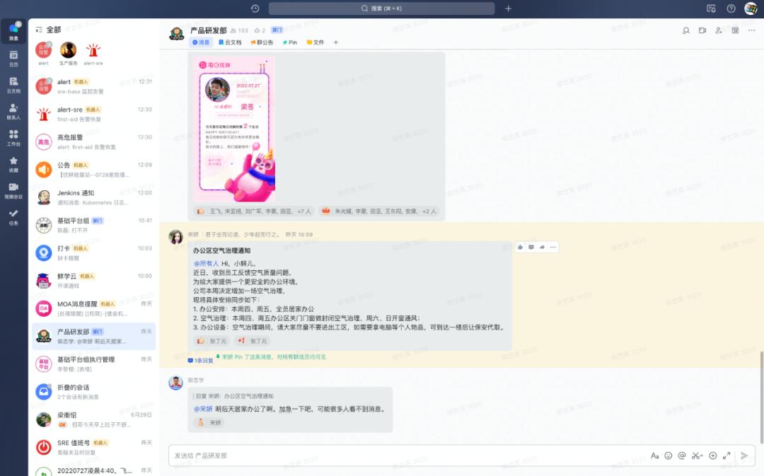 7月27日晚间,每日优鲜HR在公司飞书群以“防疫、办公场所甲醛超标”等理由,要求员工居家办公,不必来公司上班。然而第二天一上线,各部门就开了一个二十分钟的会议,直接通知解散,随即员工的飞书账号已经无法登录。
