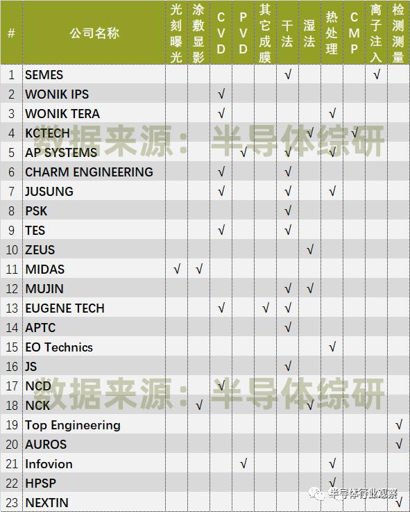 韩国半导体前道设备供应商名单 图源:半导体综研