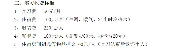 「实习总费用不高于每人每年 600 元标准。」