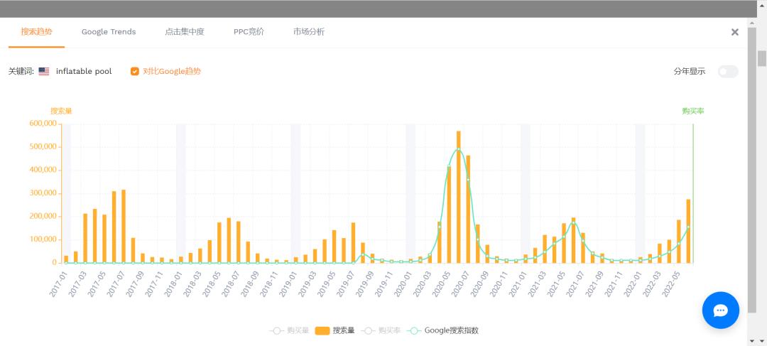 虽然已经有了几十年的历史,销量也一直不错,但充气泳池销量的爆发是在2020年。