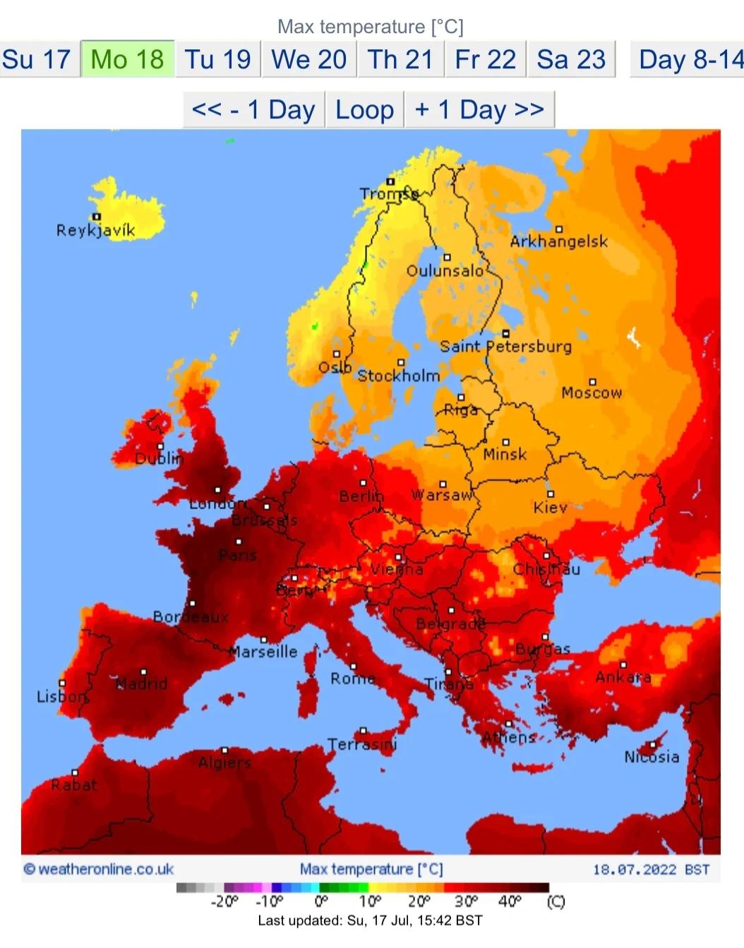 “看了一下全欧洲的气温,感觉只能去冰岛了。”小红书上,身处伦敦的博主大熊哥发出一条笔记,无数身处欧洲的网友一起吐槽起了今年夏天的气温——“听说过火烧赤壁,第一次见到火烧欧洲”。