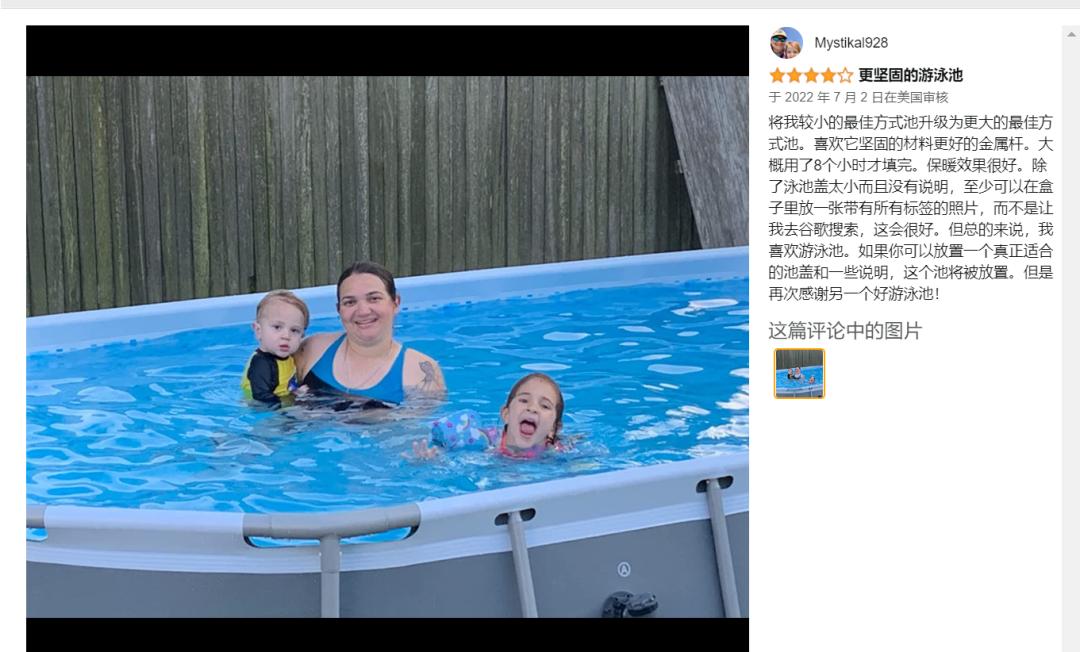 评论区中,无数欧美消费者表达了自己的喜爱之情,夸赞泳池解决了自己家一整个夏天的炎热问题,是和朋友聚会的完美场所,还有美国妈妈表示:“这个泳池帮我解决了夏天暑假带孩子的难题”。