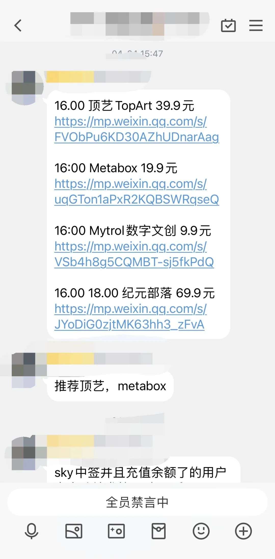 杨先生所在的群里,4月群内“大神”还在推荐顶艺TopArt
