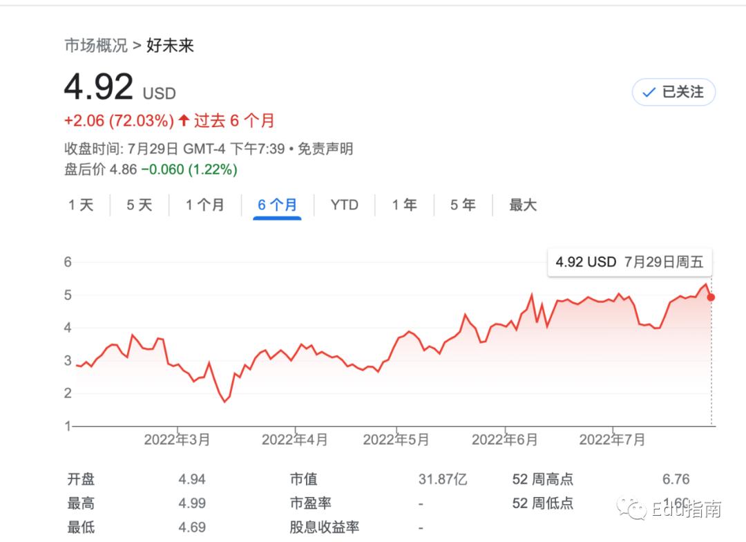 截至发布文章前,经历了双减的好未来公司,过去一年市值表现为下跌近19%。或得益于新产品研发与交付等进展,投资者信心回暖,过去半年,该公司市值表现为上升72%。当前公司市值为31.9亿美元。