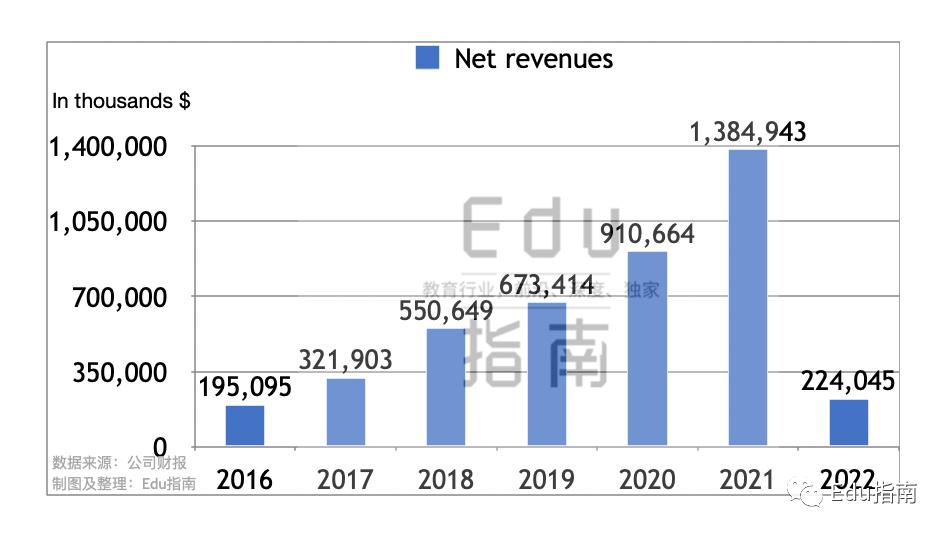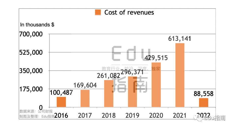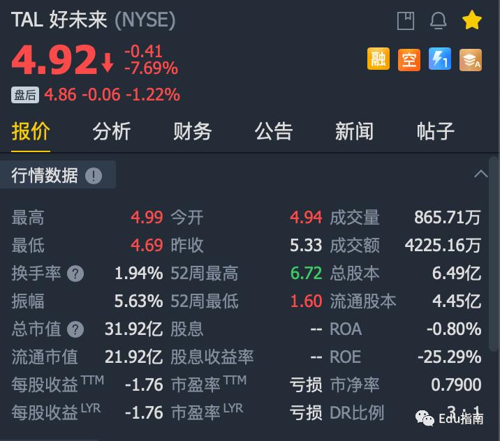 好未来公司于今年4月发布其上一季度(截至 2022年2月28日)业绩, 根据财报数据,好未来公司2022财年Q4营收为5.4亿美元,同比2021财年Q4的13.6亿美元,收入下降60%。3个月后发布2023财年Q1财报,即本季度业绩数据,从营收角度好未来环比显著下降,下降比例超过一半。 季报发布后当天交易日,好未来公司股价下跌7.7%。