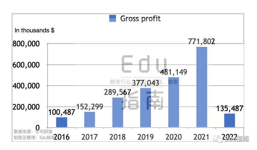 2023财年Q1好未来的毛利润为1.35亿美元,同比2022财年Q1的7.72亿美元,下降82%。为近6个财年Q1表现最低,稍高于2017财年Q1的1.00亿美元。