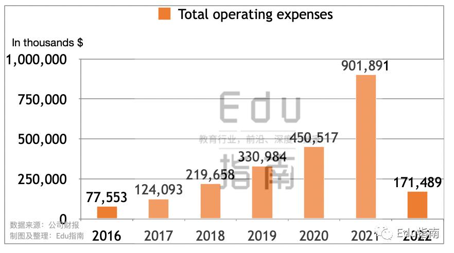 根据季报,好未来公司本季度经营支出为1.71亿美元,2022财年Q1经营支出为9.02亿美元,同比减少81%支出。本财季经营支出低于2019财年Q1(截至2018年5月31日)2.20亿美元支出,为近5个财年Q1最低数值。