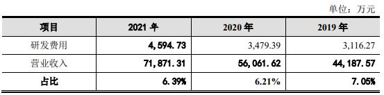2021年,科拓股份研发费用达4594.73万元,占营业收入的6.39%。其中,研发费用主要系人工费,占研发费用的比例为90.51%。