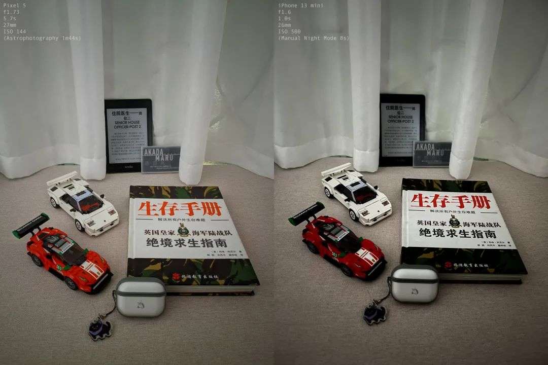 左为 Pixel 5 开启天文模式 1 分 44 秒,右为 iPhone 13 mini 手动夜景模式 8 秒(未使用摄影风格)