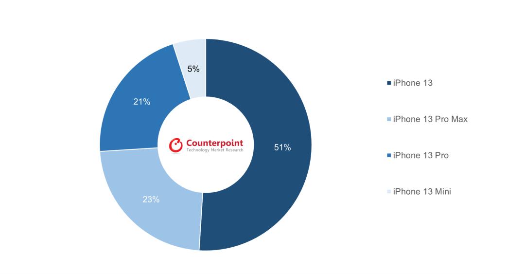 而换代后的 iPhone 13 mini 仍然没能完全解决上一代 mini 的一些基本问题:国行机型依然没有双卡、 2438 毫安时的电池对于绝大多数人来说依然需要仔细计算着使用、 A15 与 5G 依然「打得火热」,并且相比于同代的 Pro 机型更是缺失了非常吸引人的 ProMotion 技术——内外交困的情况下也就导致 13 mini 的销量依然不及预期,在刚刚上市、关注度最高的 3 个月间也只贡献了 13 系列 iPhone 国内销售总量的 5% :