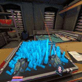 本作的可互动要素也比较齐全,场景中的设备和武器需要手动触发和操作,安全屋里的全息地图则添加了完全基于手部动作的交互系统,将其称为 VR 一体机版本的《半条命:艾利克斯》也不为过。最难能可贵的是, Resist 提供了一个带有各类支线剧情和挑战的开放时间以供探索,尽管机制上依然是模仿育碧式开放世界的模式,但这些额外内容的加入也让原本线性的游戏内容增厚了不少。