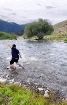 为了证明水是真的,他反手将桶扔进湍急的河里,桶差点都丢了。