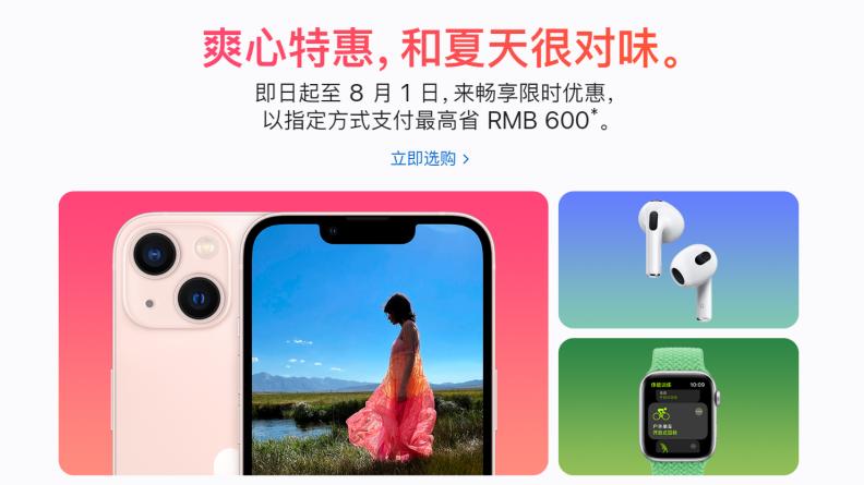 值得一提的是,苹果今年对于“价格战”的参与热情空前高涨。从7月29日开始苹果已经开始了为期4天的夏日打折活动,最高优惠达到了600元。