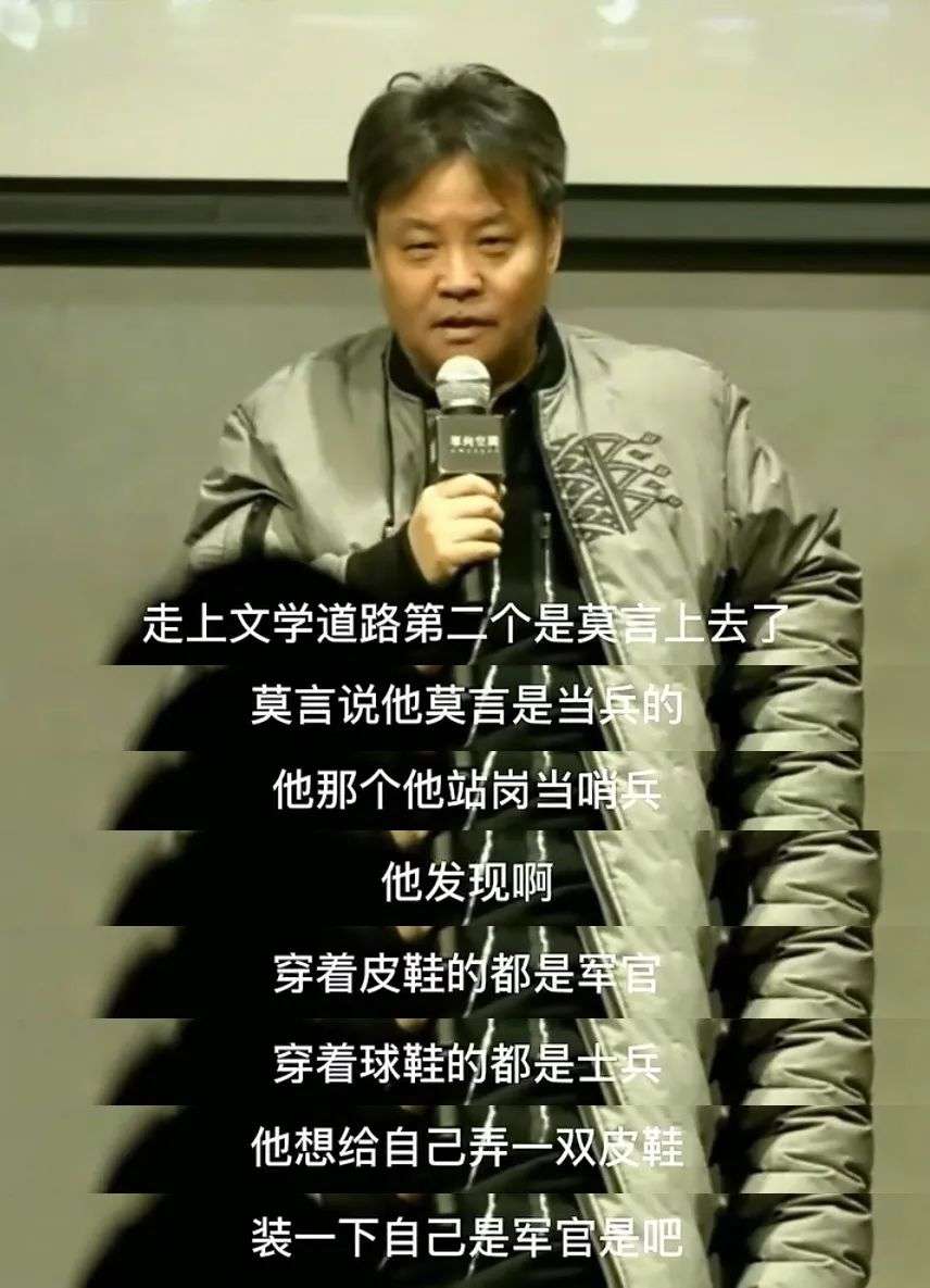 莫言上台,直接说只是想挣点稿费,给自己买双皮鞋,装一装军官。