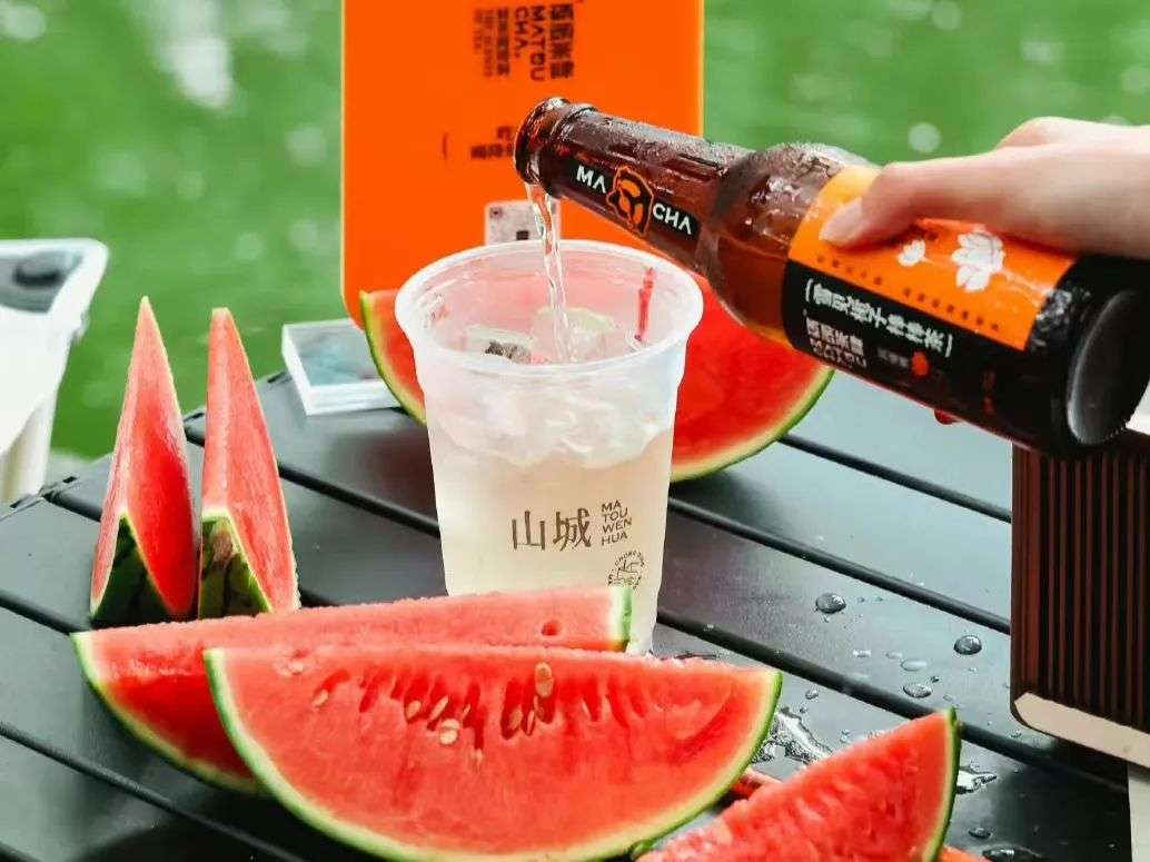 带有啤酒风味的气泡纯茶,很受当地年轻人欢迎,小红书上有人分享自己3天喝了11瓶气泡茶的经历,还有人感叹,离开了重庆依然想念码头茶肆的那口气泡茶。