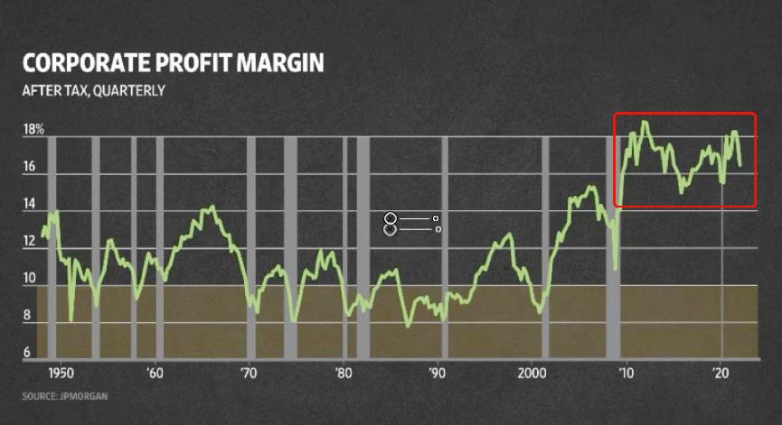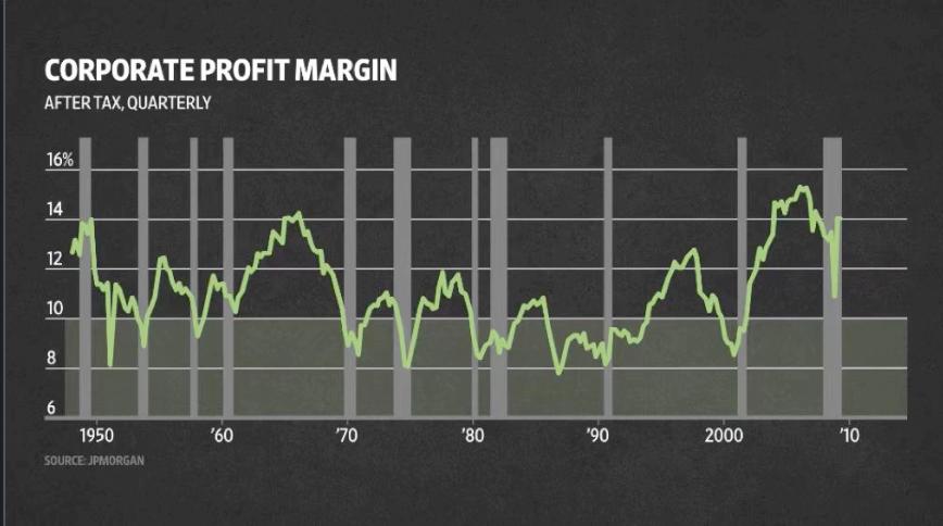 但与以往的经济衰退相比,企业现在的处境有所不同。这张图表显示企业利润率。我们可以看出企业平均利润率都在个位数。其中一次是由企业驱动的衰退。比如2001年由于企业过度投资。于是他们决定削减开支以恢复利润率,而这直接导致了经济衰退。