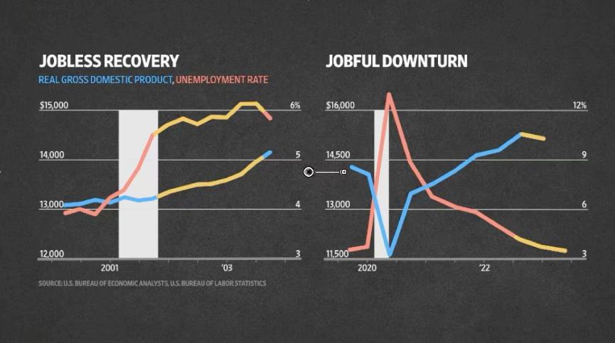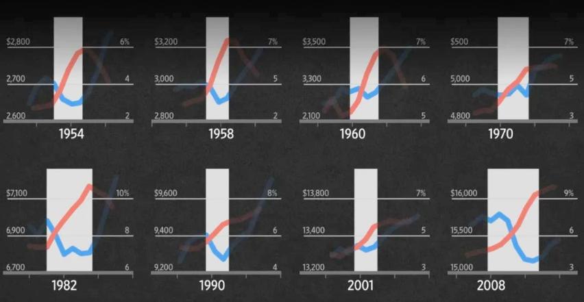 如果你回顾美国自二战以来的每次经济衰退,你会发现GDP以及失业率上升这两件事一定是同时发生的。