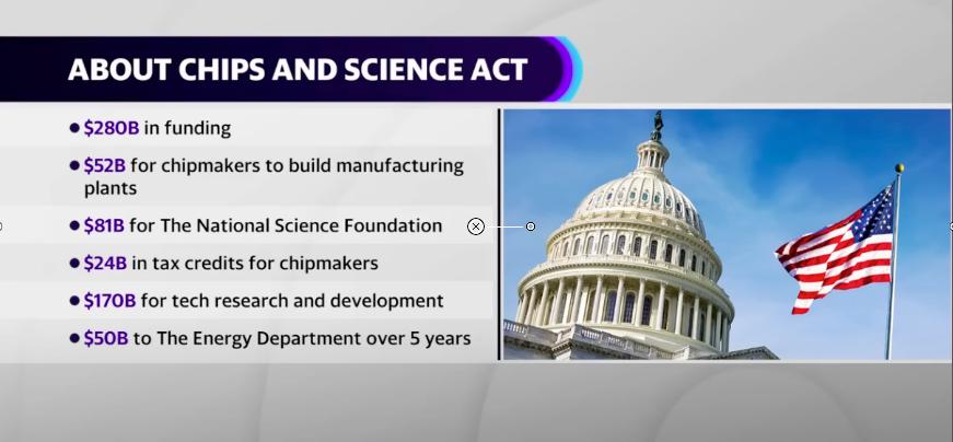 这项法案足足的有1054页,核心内容是为美国计算机芯片制造业提供527亿美元的补贴,还将为美国的半导体制造业提供25%的税收抵免,为依赖外国电信公司的美国企业拨款15亿美元用于技术开发,并为美国商务部拨款100亿美元用于创建20个区域性技术中心。
