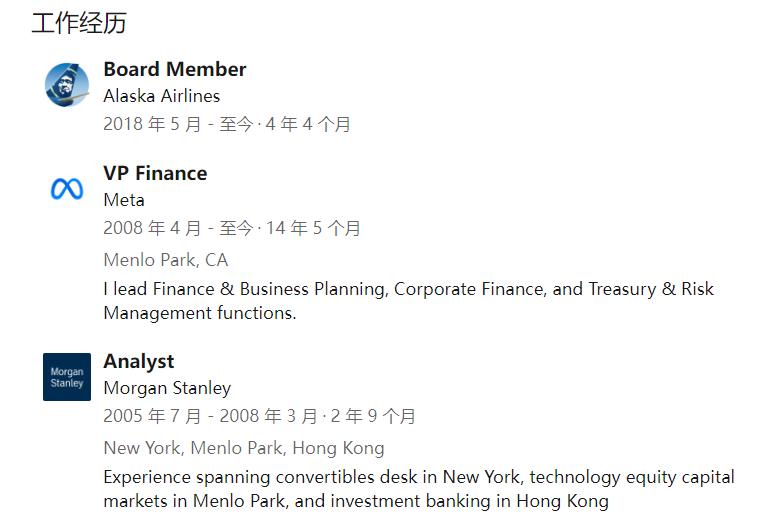 不过,尽管Susan Li如此优秀,但对于不少投行分析师来说,Meta选择让这样一位完全没有CFO经验的人选来直接担任CFO,还是有些意外。